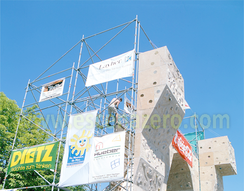 Gracias a la versatilidad de los materiales Layher se pueden construir infinidad de elementos, en esta sección encontrará sólo algunos de los ejemplos para que se haga una idea. Rocódromos, soluciones publicitarias de corto o largo tiempo, controles, mesas, dobles pisos, etc.